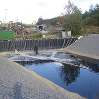 Dammanläggningar för behandling av dag-, lak-, avlopps- eller processvatten samt sedimenteringsdammar och vid avgränsningar av vattenvolymer är exempel på användningsområden.